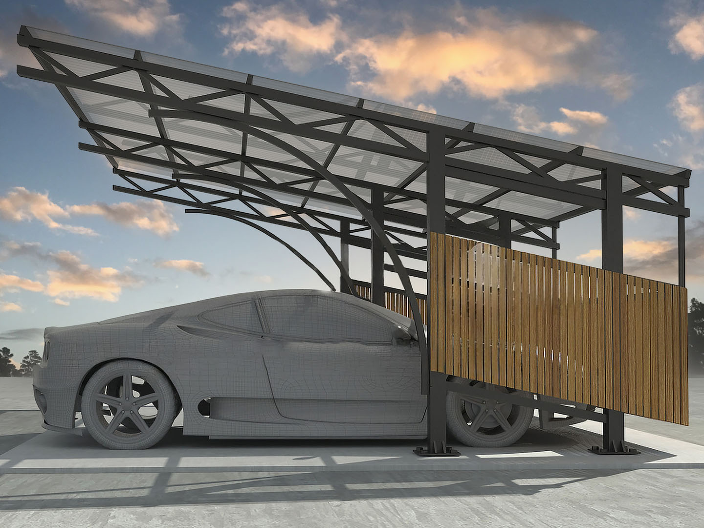 • Эффектный внешний вид: Благодаря отсутствию опор спереди, консольные навесы выглядят легко и современно.