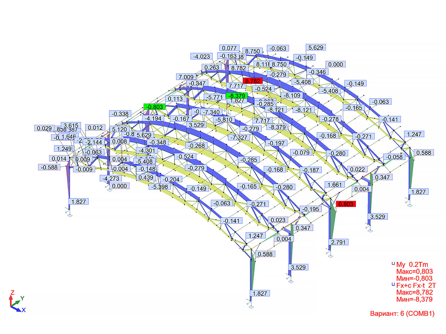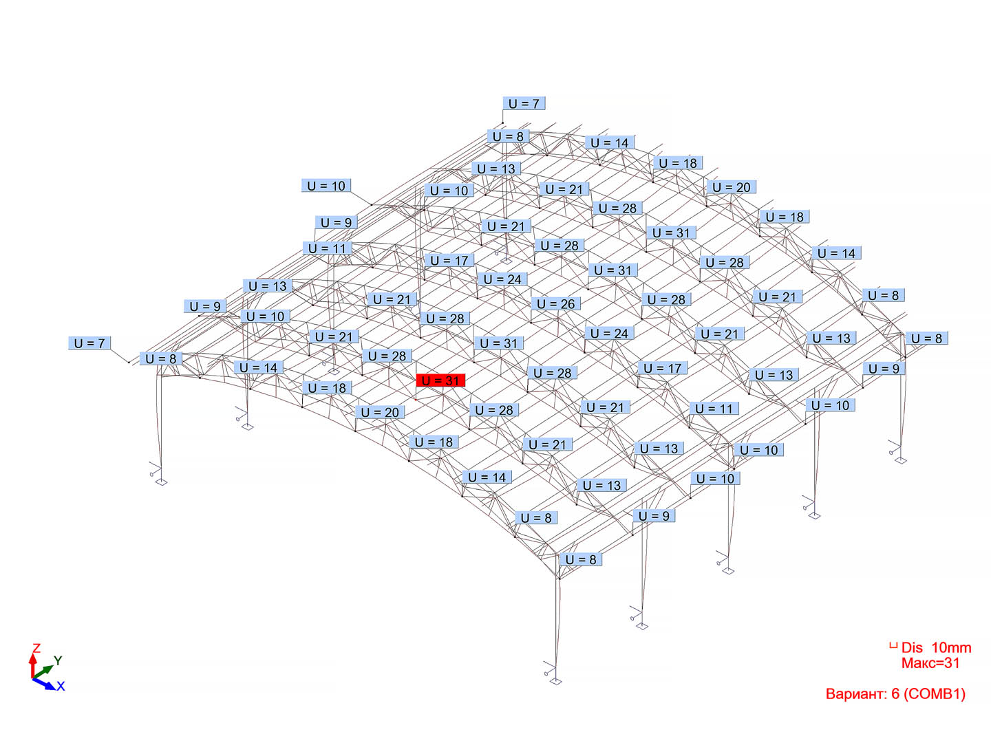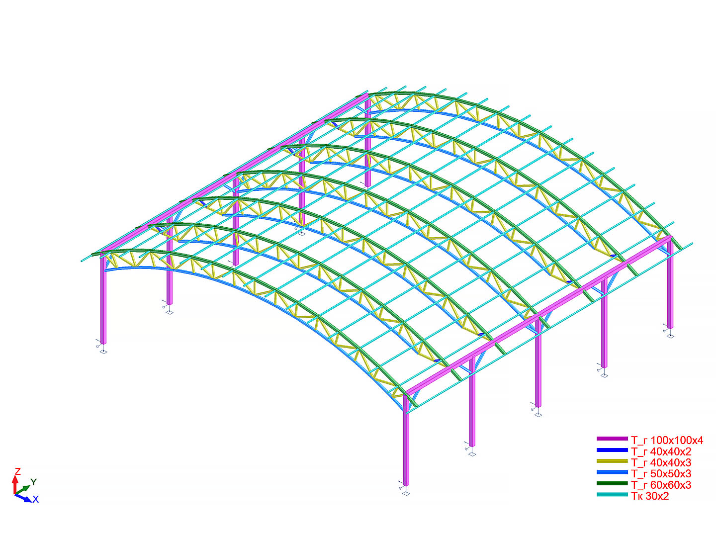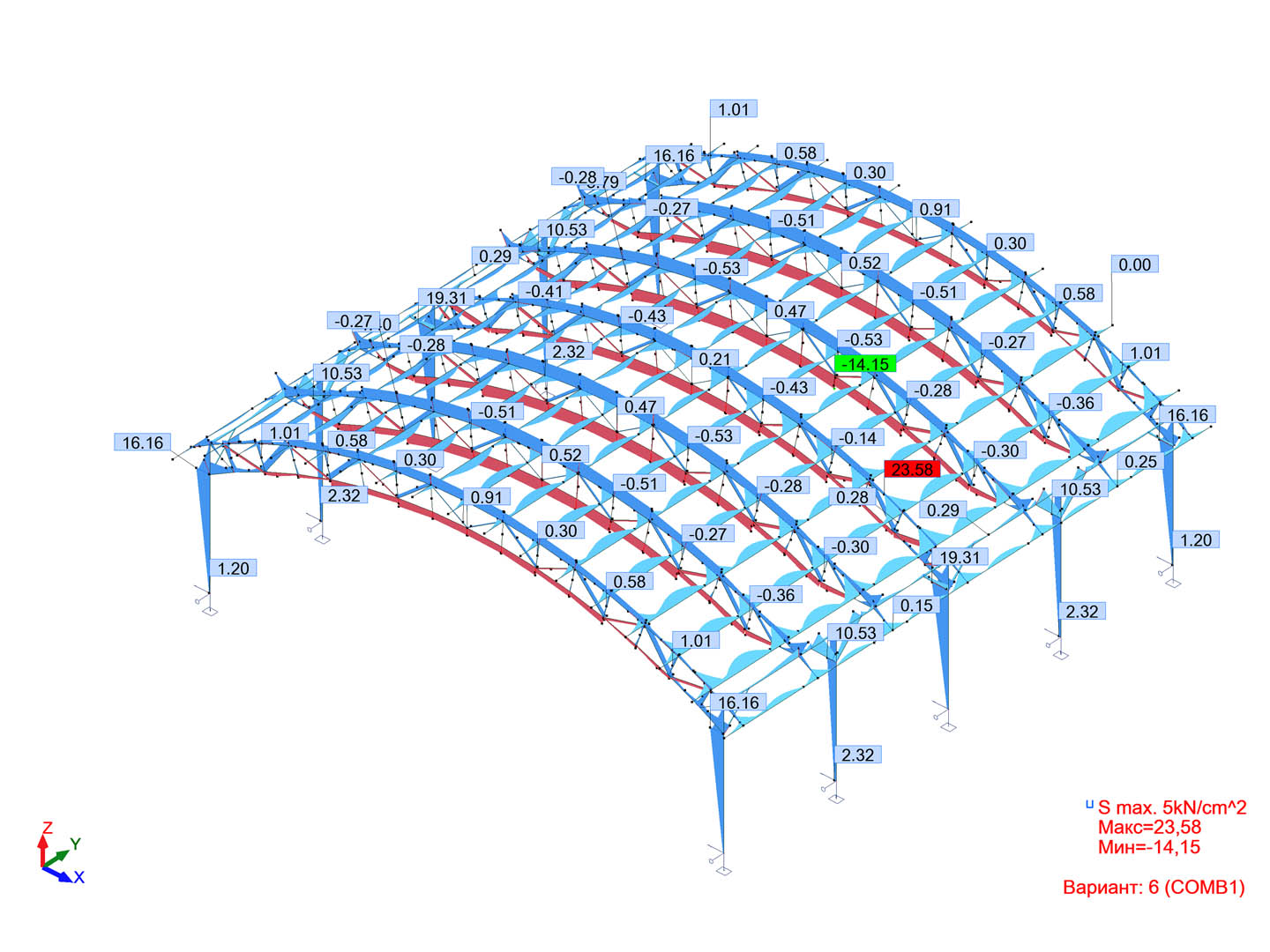 • Проверочный расчет: Для этого используются надежные программные комплексы SCAD Office и ROBOT Structural Analysis, чтобы гарантировать прочность навесов, их устойчивость, и соответствие всем строительным нормам.